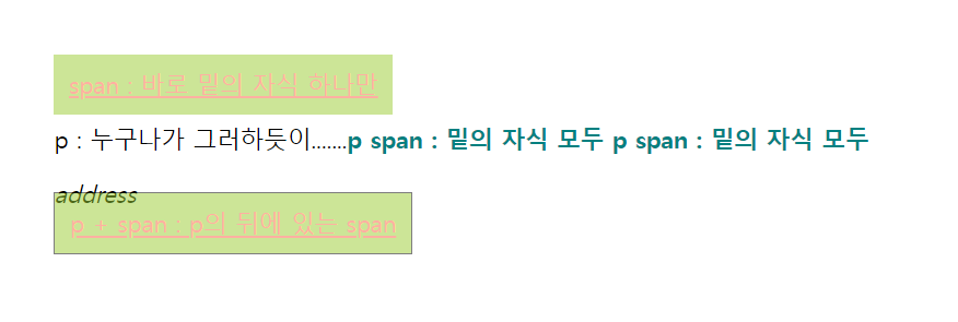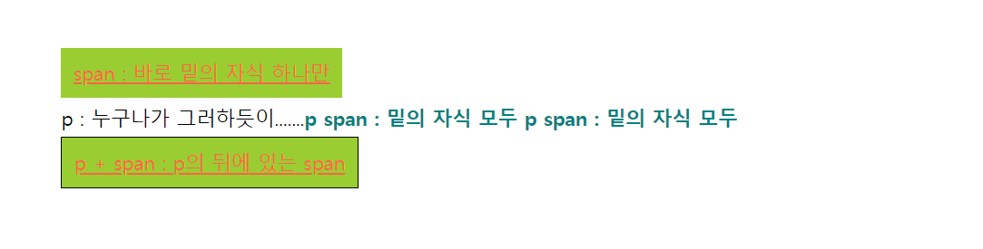 <span>p span : 밑의 자식 모두</span>