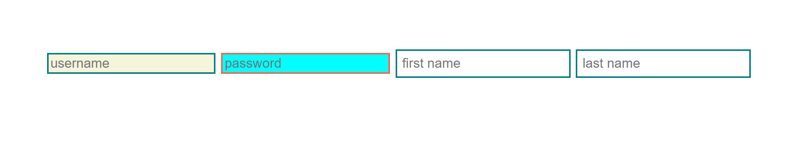 <input type="text" placeholder="first name" />