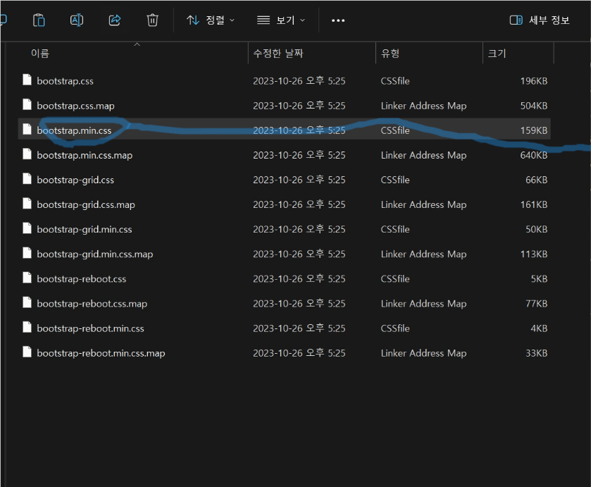 2. 다운받은 파일 중 아래 파일 나의 spring 프로젝트 경로 중 static의 css 파일에 넣어준다.