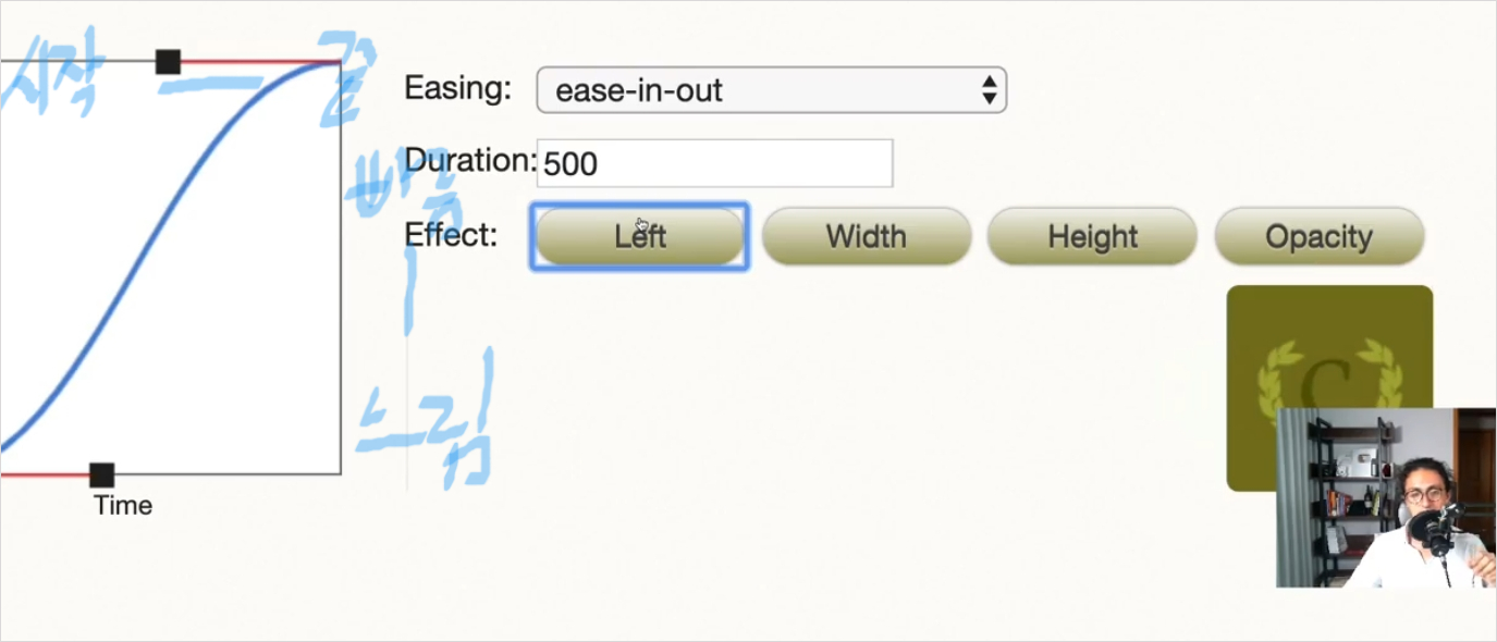 #4.0 Transitions (09:40) : Transition 적는 위치 더보기 Go Home #4.1 Transitions part Two (07:45) : ease-in funtion 더보기 ease-in funtion 실습사이트 https://matthewlein.com/tools/ceaser Ceaser - CSS Easing Animation Tool - Matthew Lein Choose an easing type and test it out with a few effects. If you don’t quite like the easing, grab a handle and fix it. When you’re happy, snag your code and off you go. Now tha..